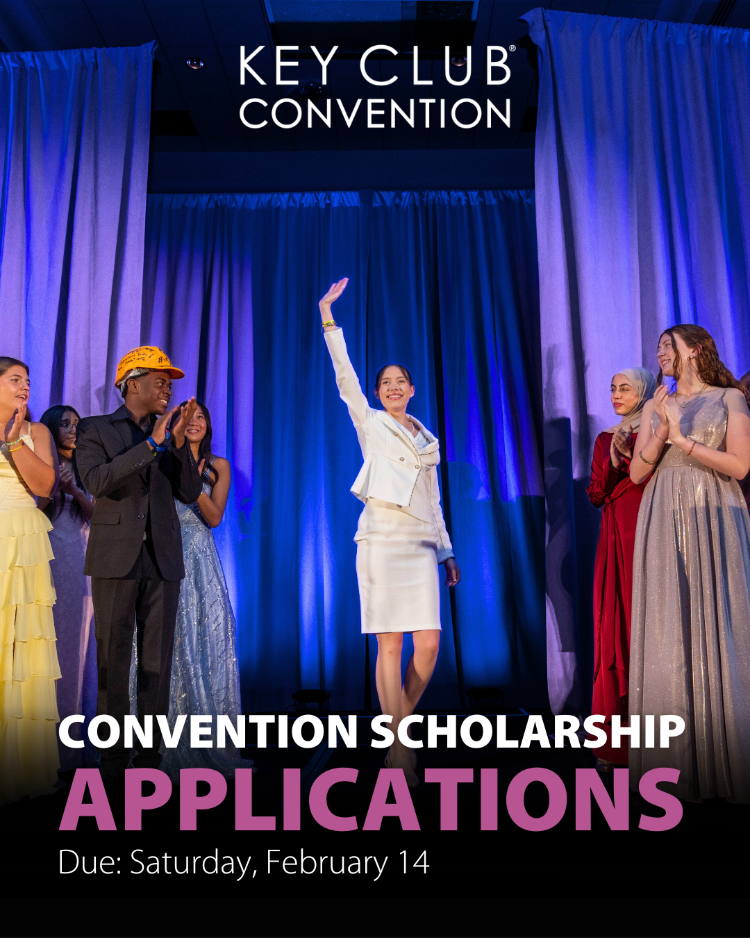 If attending the Key Club International convention has ever been a dream of yours, I encourage you to apply for the scholarship. The deadline is February 14 at 11:59 p.m. ET / 8:59 p.m. PT.